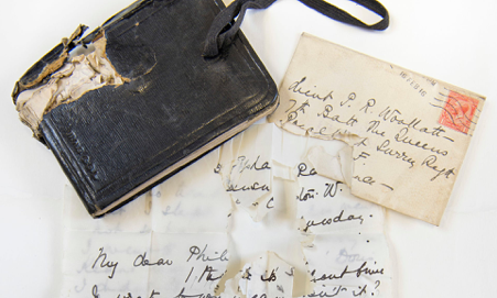 The First World War soldier’s pocketbook – containing the informal Will that all servicemen carried – was found furrowed by a bullet after a battle in July 1916 in which it is presumed the 21-year-old died.