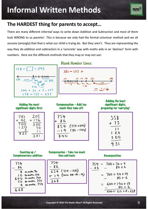 Knowledge takes a little bit more effort. Try not to force your way on them - they might not be ready to drive yet! A recent Cambridge University report into the origins of maths anxiety states “primary-aged children referred to instances where they had been confused by different teaching methods”. You need to open your mind to the alternatives, take time to understand the new methods and terminology, be prepared to take the scenic route. Knowledge is understanding the correct way to help your child with their maths.