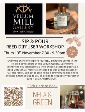Join Kerry, owner of local handmade business Nela & Green, to explore four of her signature scents while you hand make a reed diffuser. All materials included plus two glasses of fizz